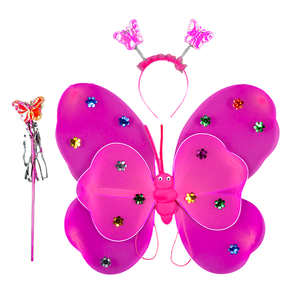 Набір подвійні карнавальні крила Феї Метелики малинові. Кріпляться на гумках.